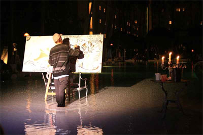 Down the street at the Delano, another pool party was unfolding, where street art met water. As the crowd circled and sipped, a graffiti artist amused guests by drawing on the spot in the middle of the pool, as the DJs unleashed techno and dance grinds. A luxurious fusion of performance art and artful performances.