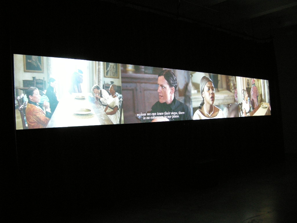 Catherine Sullivan’s multichannel video installation opened last night at Metro Pictures. This ambitious show features a 4 screen epic video piece entitled A Triangle of Need.