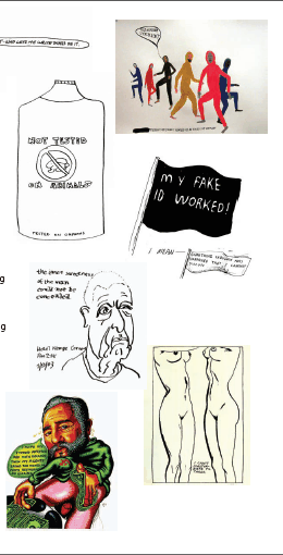 The exhibition include works by Marcel Duchamp, Shephard Fairey, Kurt Vonnegut, Raymond Pettibon, David Mamet, among many others.