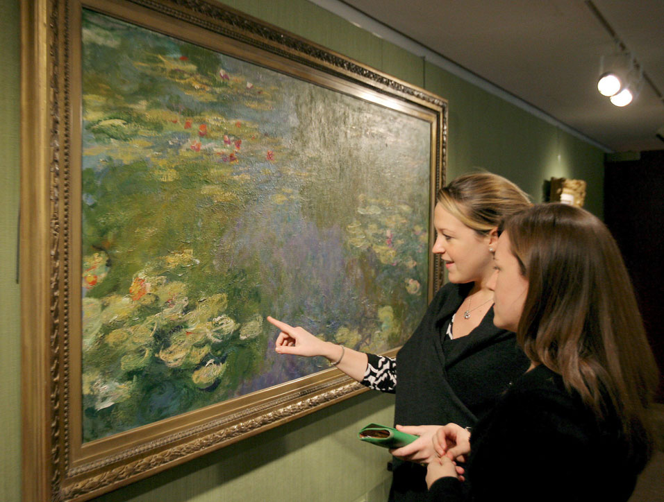 A Christie’s worker takes a closer look at Monet’s Le basin aux nymphaes via yahoo