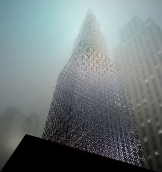 This skyscraper has been put together with over one million stainless steel replicas of the popular 20th century building toy, Erector Set. The juxtaposition of the toy building materials against it’s massive size create interest, as the structure stands as both a model and as a large-scale building.