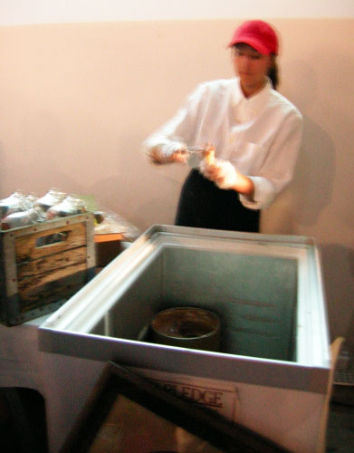 Serving up some miniature ice cream cones at 303 Gallery via Art Observed