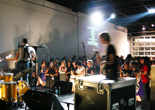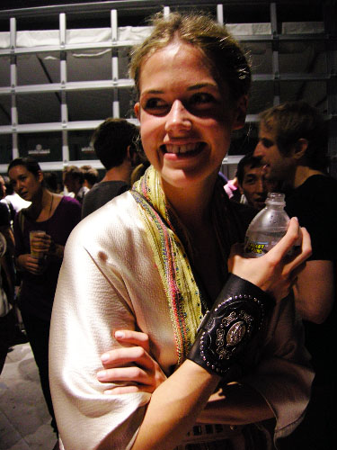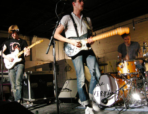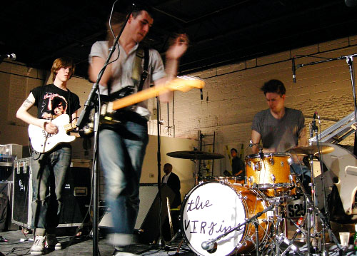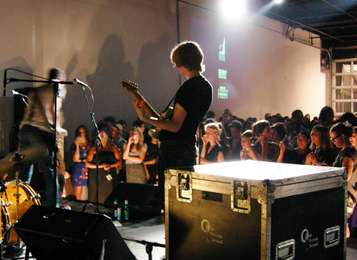 Cynthia Rowley’s daughter rocking out to The Virgins in the front row at 303 Gallery via Art Observed