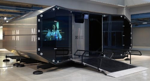 The aluminum and Perspex structure can be dissembled and assembled with considerable ease. It was designed to be able to travel the world and be re-exhibited in many different international locations. The H Box was originally exhibited in Paris at the Pompidou Center in November 2007, and is set to move to Yokohama Triennale in Yokohama, Japan next.