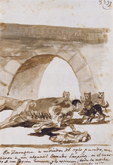 Constable Lampiños stitched into a dead horse, Francisco José de Goya y Lucientes (1746-1828) via Christie’s