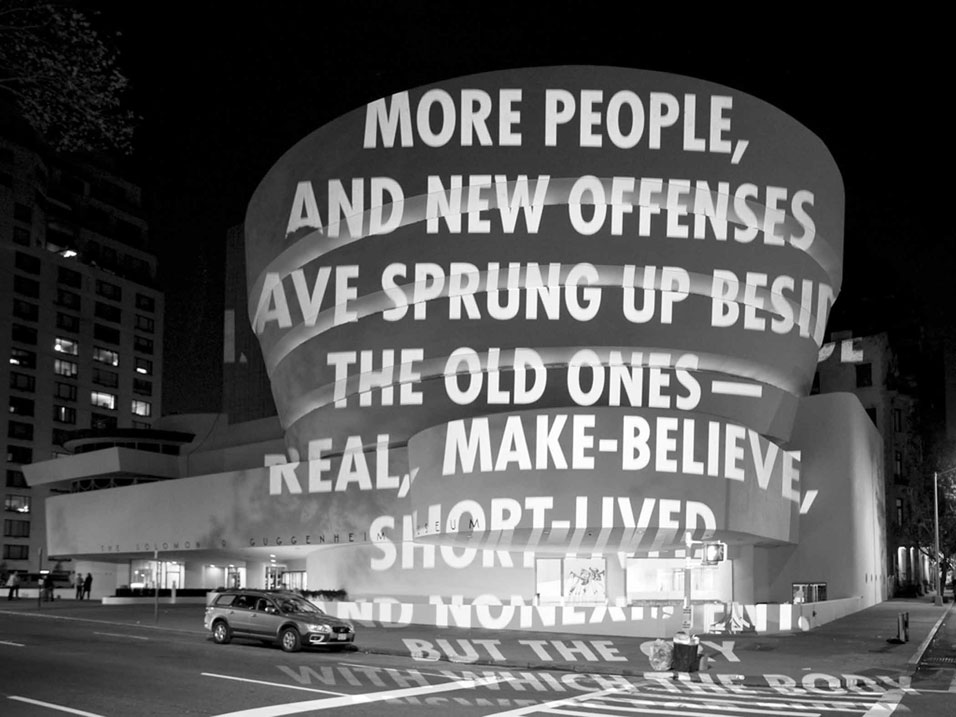 Jenny Holzer’s light projection For the Guggenheim via Art Daily.
