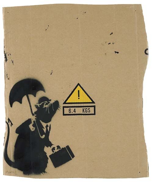 Lot 243: Rat with Umbrella, Banksy (2004) via Phillips