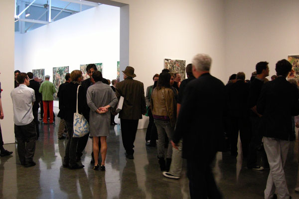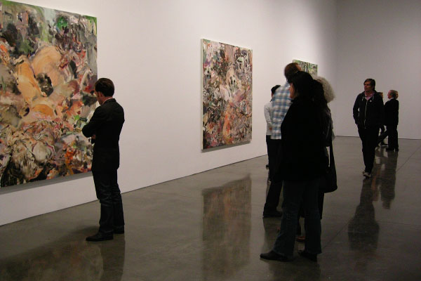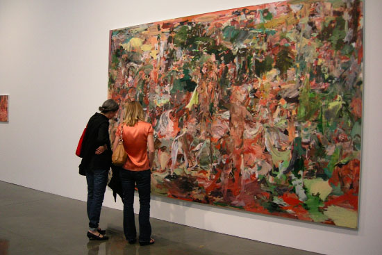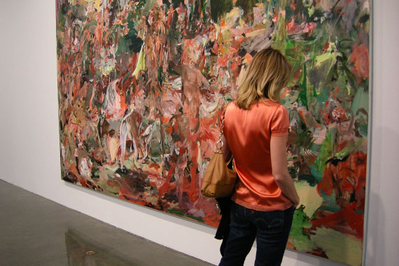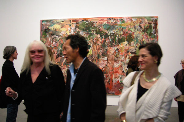 Gagosian New York is currently showing a collection of new and recent work by British painter Cecily Brown. The exhibit, entitled Cecily Brown 2008, displays her signature style in which bold figures are covered in abstract layers. The displayed work mirrors Brown’s previous work in its attempt to expand abstract expressionism, combining the influence of Willem de Kooning with figurative influences Nicolas Poussin and Edouard Manet. The exhibit also includes a series of uncharacteristically small scale paintings which marks a unique transfiguration for the artist who is best known for her large-scale works. Art Observed was at the opening reception along artists John Currin, Francesco Clemente, and Hope Atherton, Art Production Fund’s Yvonne Force Villareal, Tim Hunt from the Warhol Foundation.