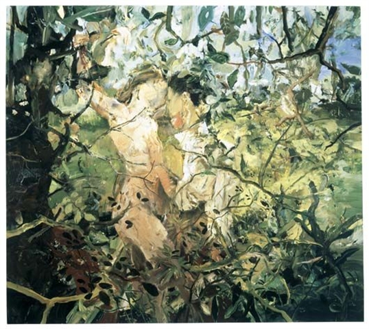Teenage Wildlife by Cecily Brown via Artnet. The piece is displays figures under layers of abstract paint in Brown’s signature style.