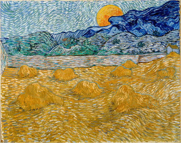‘Landscape with Wheat Sheaves and Rising Moon,’ (1889) by Vincent Van Gogh, via New York Times