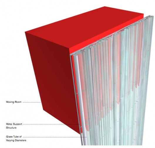 Diagram describing the red moving room in Sperone Westwater’s new Bowery Gallery, via Curbed