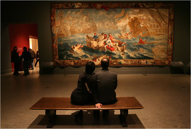 Visitors at “Tapestry in the Baroque: Threads of Splendor” an exhibit at the Metropolitan Museum that Thomas P. Campbell curated in 2007 via NYTimes