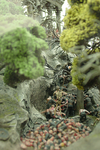 A detail of work from Jake and Dinos Chapman’s model “Das Kaiptal Is Kaput (ya, Nein Dumpkoff)” at Frieze via from Graffotto UK