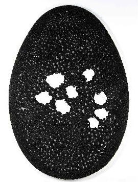 The top seller was Lucio Fontana’s “Concetto Spaziale, La Fine di Dio” (1963, pictured below), an egg shaped canvas, with painted black and sprinkled with glitter (more on this from Art Observed here), which sold for £9 million – still £3 million below its estimate of £12 million. The artist’s auction record still holds, as set by Sotheby’s in February when a 1963 gold work from his “Concetto Spaziale” series sold for £10.3 million. Before the auction, Christie’s announced that persons with a financial interest in the guaranteed work would be bidding. There was no demand in the room and the auctioneer provided the sole bid.