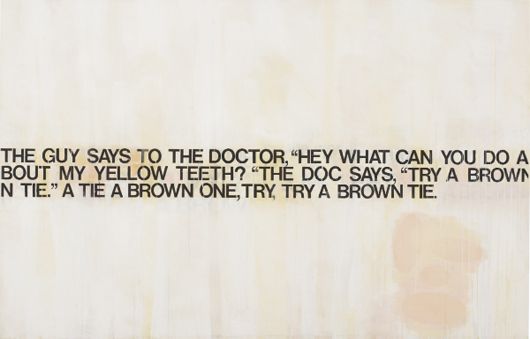 The American artists however, were not immune, despite their pricing in reasonable £250,000 to £500,000 pound ranges: a typical 2004 Ed Ruscha (pictured below) failed to sell. It was estimated at £300,000 to £500,000. The same fate met Lisa Yuskavage’s 2003 “Dark Garden II” (pictured below) against an estimate of £250,000 to £350,000, and a 2001 painting from Richard Prince’s “Joke” series against an estimate of £400,000 to £600,000. A 1988 Donald Judd estimated at £550,000 to £750,000 was also taken back in.