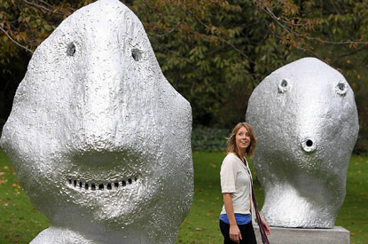 Two of six metallic heads from an installation by Swiss artist Ugo Rondinone in the English Gardens outside of Frieze via ThisIsLondon