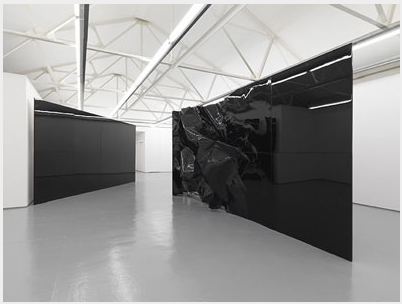 Banks Violette’s second solo show at Maureen Paley offers black-metal fervor in a minimalist shell. While Violette’s previous installments have focused more upon audible aesthetics like his collaboration with the drone-metal musician Sun O)))), this will be Violette’s first exhibit featuring video. An appropriated and manipulated clip of the signature TriStar Pictures horse is projected upon an invisible screen of water vapor to appear as if the image is hovering (which can be seen here). Upstairs includes influences from his previous works that take on the formal language of billboards and projection screens but mangled, broken, and extruded. Violette was included in the 2004 Whitney Biennial and the Black Album in 2005 and since then has garnered international exhibitions. His work primarily deals with ritualistic presentations of death-metal in American culture derived from his tattoo-artist and crystal-meth induced upbringings in Hawaii. His nihilistic approach also deals with real-life narratives like teen suicides in New Jersey or church burnings in Norway.