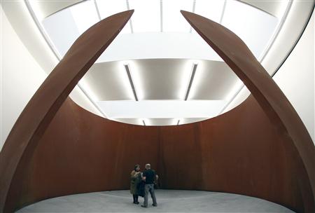 A sculpture entitled ‘TTI London’ by artist Richard Serra is displayed during the unveiling of his new exhibition at the Gagosian Gallery in London October 3, 2008 via Reuters