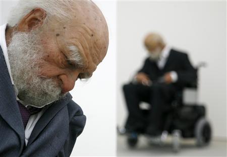 Two of 13 lifesize sculptures by Sun Yuan and Peng Yu called Old Persons Home in the new Saatchi Gallery via Reuters