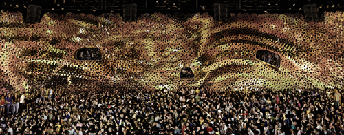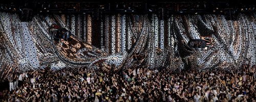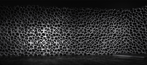 Andreas Gursky’s sixth exhibition at Matthew Marks Gallery is currently on display. The exhibit features five photographs, all taken within the last two years including two pictures of Cocoon, a massive nightclub in Frankfurt designed by Gursky’s friend Sven Vath, a well known electronic musician and DJ. The club’s name inspires its architecture, as it mimics a hive or the imagined insides of a cocoon, and the photographs depict swarms of people dancing, extending the metaphor. The Cocoon pieces follow Gursky’s interest in electronic music, and previous photographs of large raves and electronic music concerts. ‘Hamm Bergswerk OST’ was shot in a coal mine close to Dusseldorf, Gursky’s home town, depicting the ceiling of one of the mine’s locker rooms, where the miners store their clothes in an unconventional way. While the exhibition is small, the scale of the photographs is very large, typically towering over the viewer, with broad panoramas full of absorbing detail that immerses the spectator.