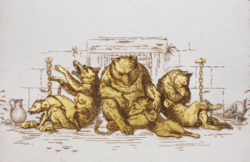 Other pieces in the show include two solid bronze, fully skateable half-pipes, a bronze dumpster, and bronze car batteries stacked on each other, reflecting the artist’s “fascination with the transformation of common objects into works of art,” according to the gallery’s press release. “Gold and Plywood” is a series of pyrographed plywood panels covered in gold leaf, and carved to represented animalistic inspired by illustrations from Goethe’s Reineke Fuchs.