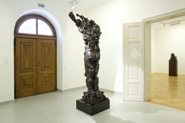 Now on display at Galerie Thaddaeus Ropac in Salzburg, Austria is German artist Jonathan Meese’s most recent sculptural works. Meese has been known in particular as a performance and installation artist but has recently renewed his artistic focus on the classic forms of painting, drawing, and sculpture. Though varied are his mediums Meese’s works are known to employ a constant theme of symbols, signs, and badges that serve as figurative allusions to characters in history, fictional literature, and current pop culture that are as varied as Stalin and Scarlet Johannson. The artist’s work also serves as a reflection and reconstruction of German history and mythology. This exploration has lent the artist to be compared to fellow German artist Anselm Kiefer whose work, especially that of the 1970’s, drew substantial inspiration from the history of Nazi Germany.