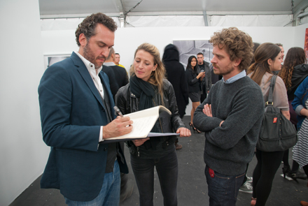 The first Art Los Angeles Contemporary annual international contemporary art fair kicked off last night at the Pacific Design Center in West Hollywood, California. Open through January 31st,  the fair presents 55+ galleries from around the world, with an emphasis on leading Los Angeles based galleries. The fair’s opening reception presented a playground for art patrons, designers, musicians, actors and architects alike in an appropriate closing to Los Angeles’ January Arts Month. While some Angelenos remain skeptical of another Art Fair, a critique set off in domino effect by the LA Times’ announcement of the fair, Curator Helen Varola arranged a diverse series of speakers and panels, in addition to securing an eclectic group of galleries and artists from around the world. Highlights included Los Angeles galleries such as David Kordansky, Kim Light / Light Box, Blum & Poe and Honor Frasier, as well as spaces with international arms, such as Peres Projects, and Crisp, and New York favorite Gavin Brown’s Enterprise.