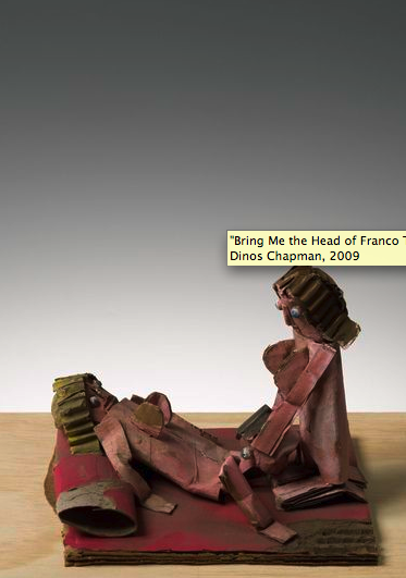 Currently on view at Contemporary Fine Arts in Berlin is ‘Shitrospective’, the gallery’s first solo show by Jake and Dinos Chapman. In this exhibition the Chapman brothers recreate the most important sculptures and installations from their career together in miniature format made in cardboard and poster paint.