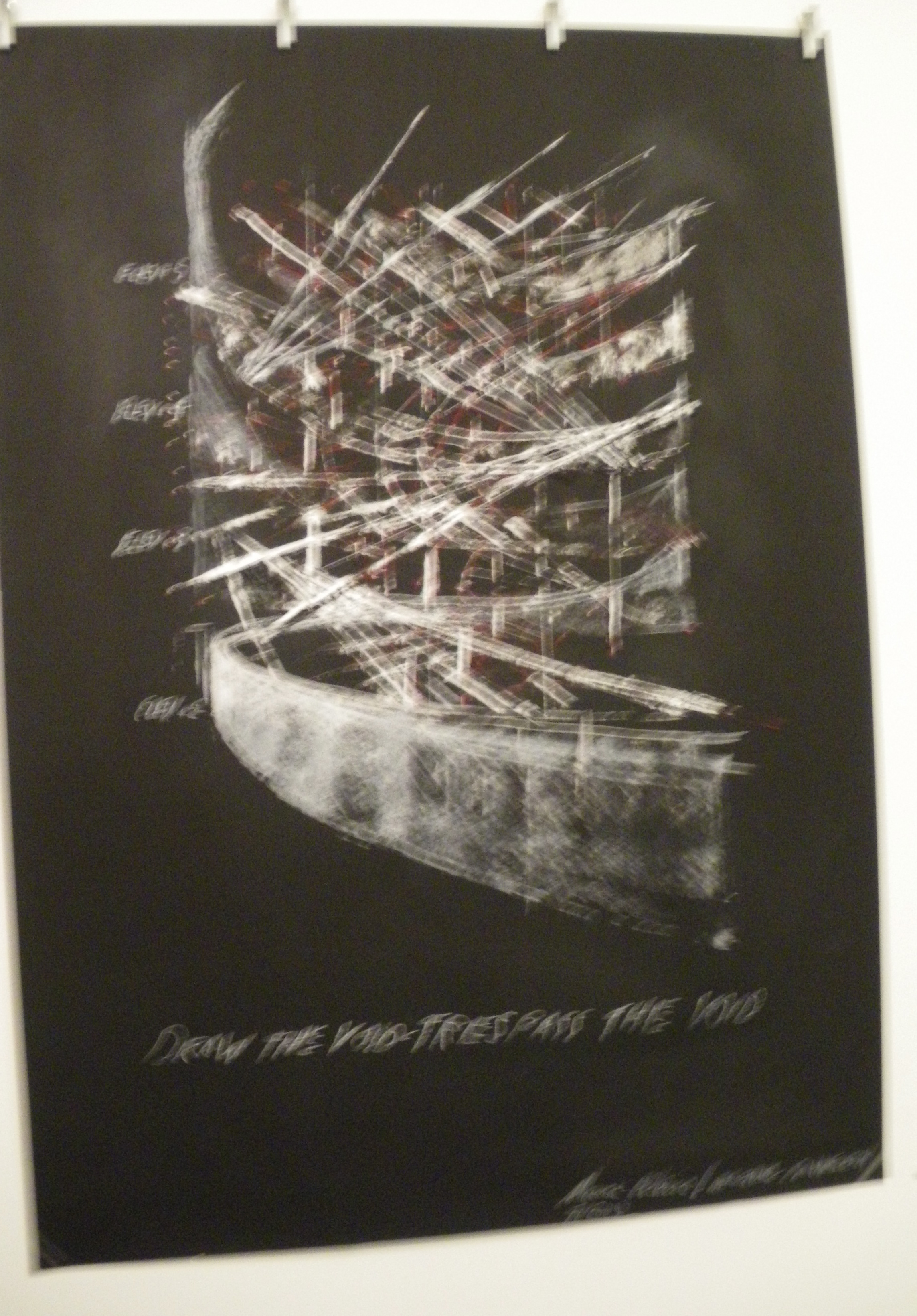Weiss/Manfredi, “Trespassing the Void” (2009), at the Guggenheim. The lettering reads, “DRAW THE VOID – TRESPASS THE VOID.” Photo by Art Observed.