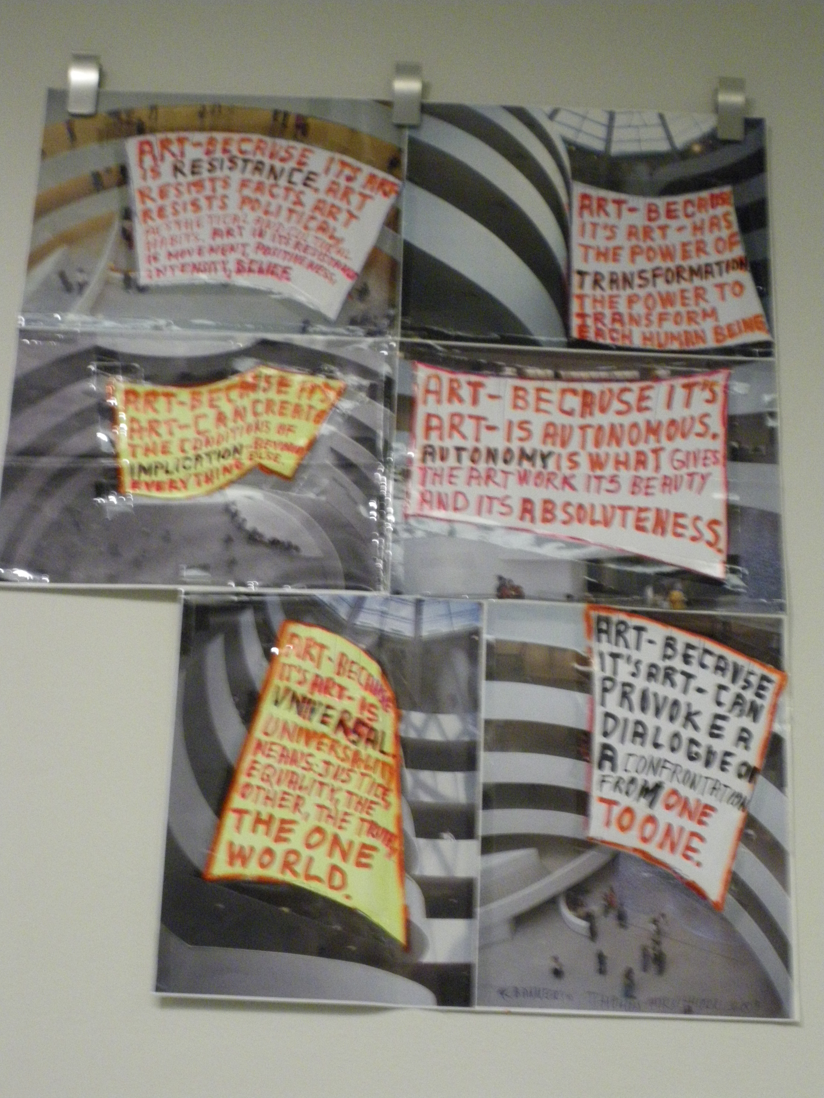 Thomas Hirschhorn, “<<Banners>>” (2009), at Guggenheim. Photo by Art Observed.