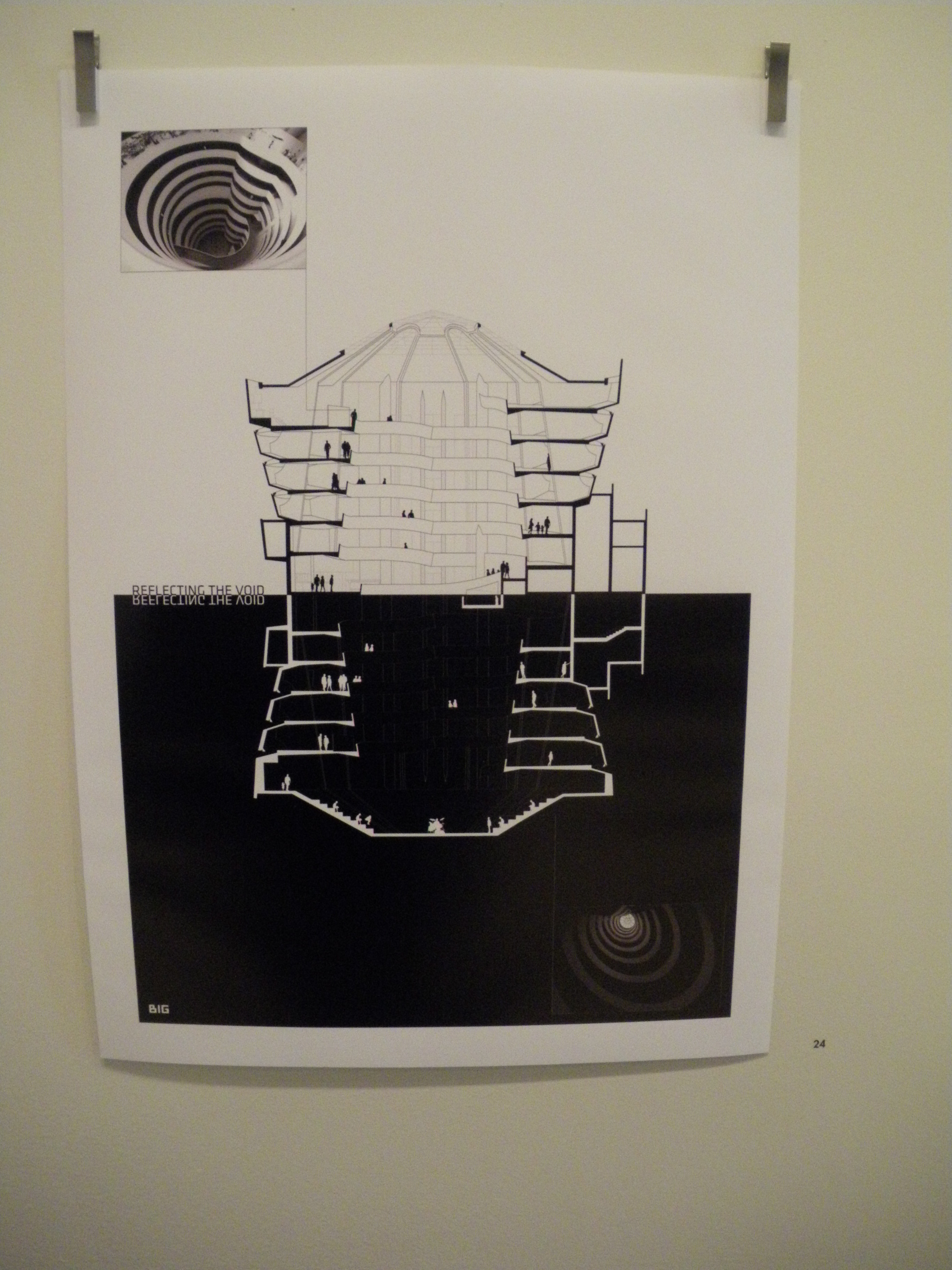 Above, “Reflecting the Void” (2009), by BIG (Bjarke Ingels Group), at Guggenheim. Photo by Art Observed. Below, detail.
