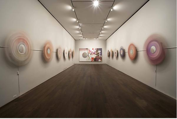 Installation view of works from “The Hole in the Wallpaper” series (works spinning) and “Speed of Light Illustrated” (2008)