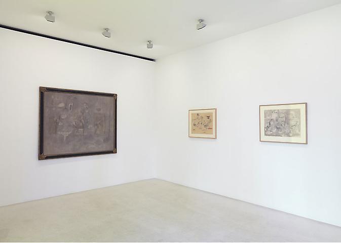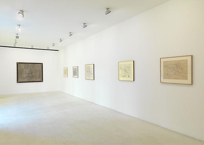 In 1946, the tragedy of Gorky’s personal life hit a very low point: On January 16, a large number of his paintings were destroyed in a fire. The fire was caused by a stove that Gorky had installed the previous month in the building he used as a studio. The fire brigade was called, but Gorky managed to save only a few items – an old coat (which he said he thought was a portfolio of drawings), a hammer, a screwdriver and a box of charcoal. Friends came to Gorky’s aid, providing him with a place to paint in Manhattan – a “ballroom in the sky” on the 17th floor of a building overlooking Central Park. Later that year, Gorky was diagnosed with cancer and operated upon in Mount Sinai Hospital. After two rather unsuccessful solo shows at Julien Levy Gallery, Gorky and his family relocated to Crooked Run Farm in Virginia, where he produced the drawings featured at the present exhibition, as well as numerous studies but no oil paintings.
