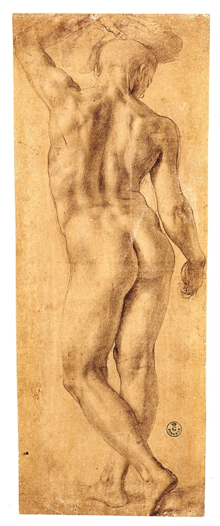 Some of the most visually compelling works are depictions of impossibly twisted and turned bodies, such as Standing Nude Seen from the Rear and Seated Male Nude. These types of artful contortions are typical of Mannerist art.