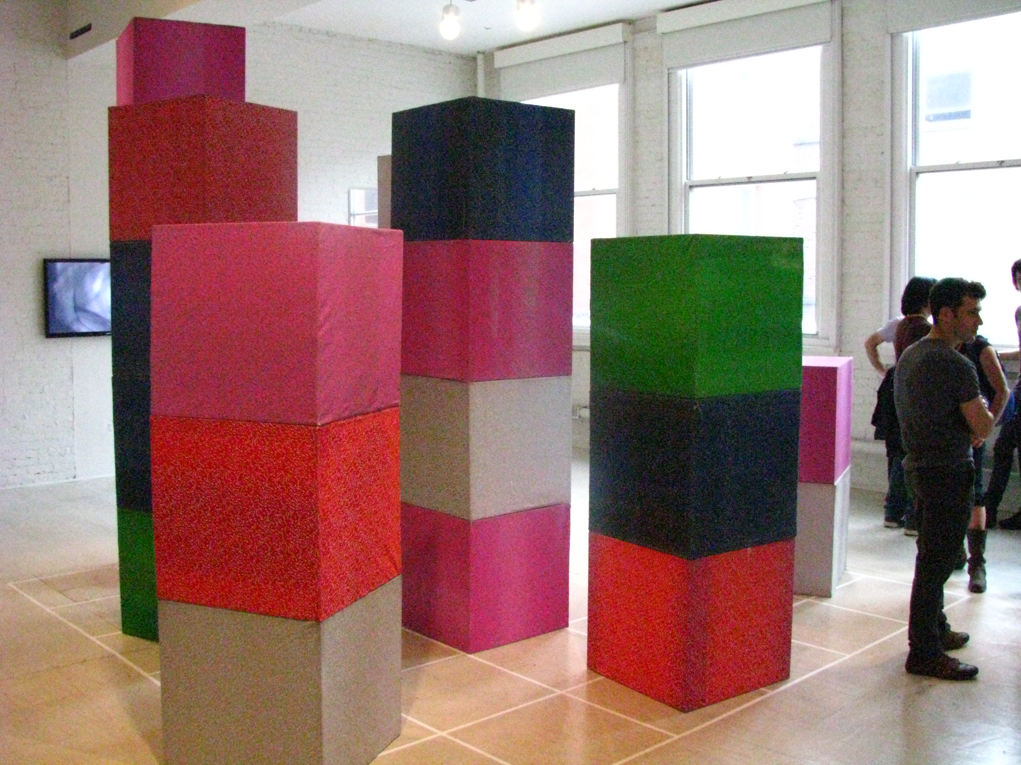 According to the press release, this year’s show – overseen by P.S.1 director Klaus Biesenbach, Museum of Modern Art drawings curator Connie Butler, and P.S.1 curatorial adviser Neville Wakefield – will center “largely on the process of creation and the generative nature of the artist’s studio.” Leading up to the opening of Greater New York, artists including Franklin Evans, Dani Leventhal, and Kalup Linzy utilized PS1 as studio space to create new work on-site.  This sort of artistic production will be ongoing throughout the exhibition in locations like the Boiler Room, where Whitney Biennialist Aki Sasamoto has invited the artist Saul Melman to collaborate. The Bruce High Quality Foundation also engages with this notion with their commission to develop an “art pedestal exchange program,” a seemingly minimal installation that groups beautifully refined new “art pedestals” that will be offered to art schools in exchange for their old worn pedestals. Over the course of the exhibition what began as a pristine white installation will transform into an amalgam of used exhibition furniture.