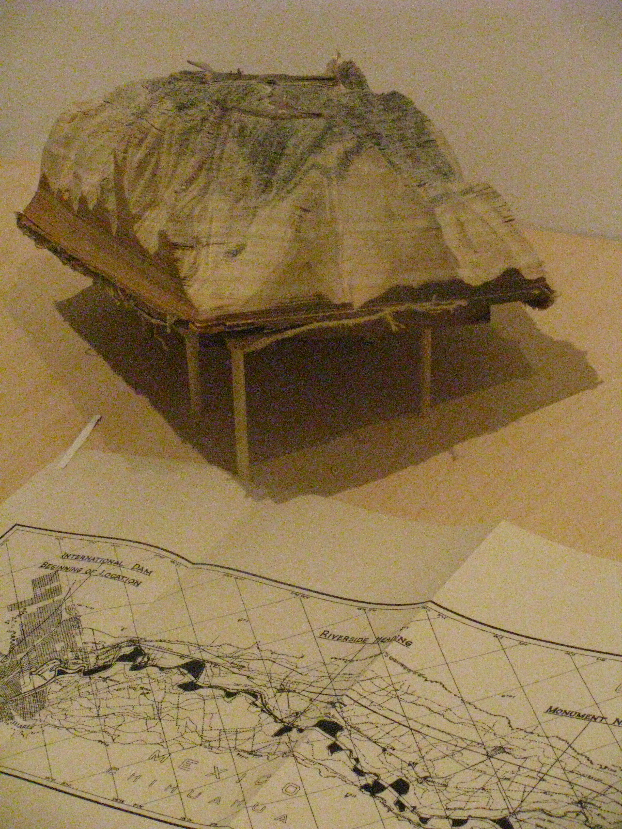 David Brooks’ work “Thus! #4” featuring trees doused in dirt and concrete and takes aim at deforestation.