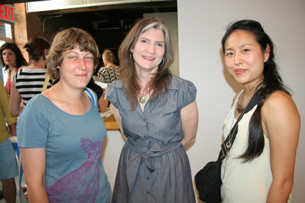 Gallerists Lisa Cooley (center), Leslie Fritz (right) and friend