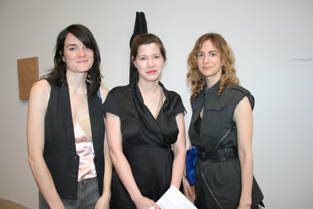 SculptureCenter Executive Director Mary Ceruti (center) with artists Lucy Skaer and Mika Tajima