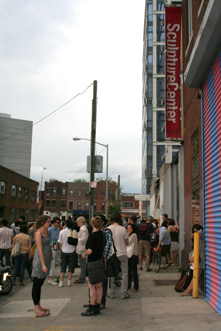 Over 900 people were in attendance at the opening last Sunday, May 2 for “Knight’s Move,” the new show at SculptureCenter, running through July 26, 2010. The exhibition brings together artists prominent to the dialog of New York’s recent past as well as those at the very beginning of their careers. Curated by Fionn Meade, this survey of new sculpture in New York embodies an informed yet playful and questioning view of the contemporary. Working within this theme, the exhibition’s title refers to the chess piece whose move is tactical, stealthy, and surprising.