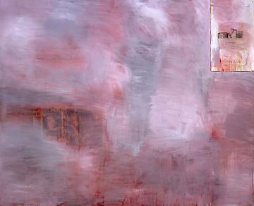 Prince’s new paintings are terse, abstract, and give illusion to various printed materials. At the same time the floating blocks of color, spatters, and swipes refer back to post-war Abstract Expressionist technique. The works are as painterly as much as they reflect the image of the written word. The titles of each work appear to be almost snatched from an advertisement stating phrases such as “Picasso”, “Fountainhead”, and “undecided.”
