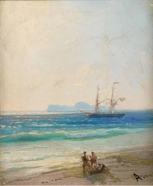 A view of Capri from the Italian mainland, with an Italian brig anchored offshore, a small yet impressive oil on panel, sold for £31,200.