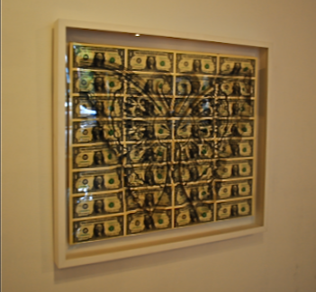 Scott Campbell, creator of a 23 x 27 inch piece in the medium of laser-cut dollar bills, trained for his artistic career by tattooing teenage gang members in 1990’s San Francisco.  He has exhibited in galleries before, at Deitch Projects in New York and O.H.W.O.W. in Miami, selling out the latter venue’s show as a solo artist.