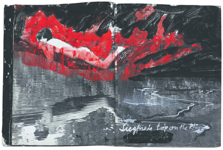 Anselm Kiefer, Brünhilde and her fate, (detail, pages 34 – 35), 1977, 30.5 x 23.5 x 2 cm, 126 pages, gouache on an edition of the “Mirror of Venus” by Wingate Paine.
