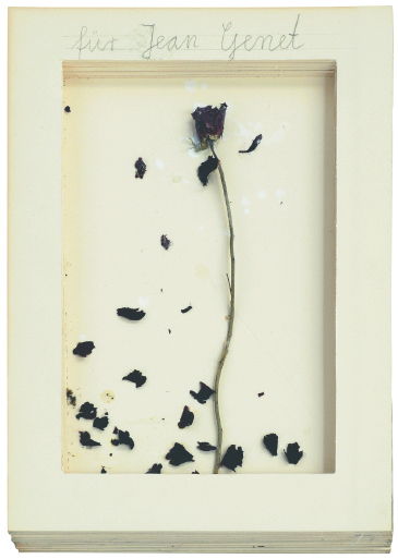 Anselm Kiefer, für Jean Genet, 1969, 49.5 x 35 x 6 cm, 10 pages black and white photographs, gouache, dried roses, and graphite on bound cardboard.