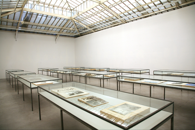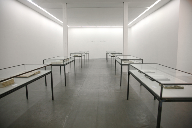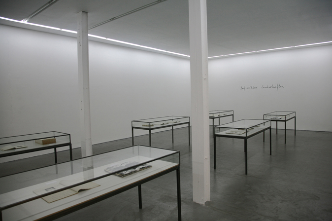 Currently on view at Yvon Lambert Gallery, Paris, through June 26 2010, is “Unfruchtbaren Landschaften” by Anselm Kiefer. The phrase, which translates to “Barren Landscape,” encapsulates the heavy and frangible works on view. Among the works, which take the form of cardboard books filled with photographs, watercolor, text, and ephemera, are many that were conceived in the late 1960s and early 70s. Enigmatic clues are scattered among cliches, both provocative and disturbing. The works serve as visions, heavily freighted with memories and symbols, inserted into and born of the sociopolitical context of World War II Germany. The exhibition’s eponymous phrase is scribbled in shaky script, conveying a feeling of school-boy-like nostalgia.