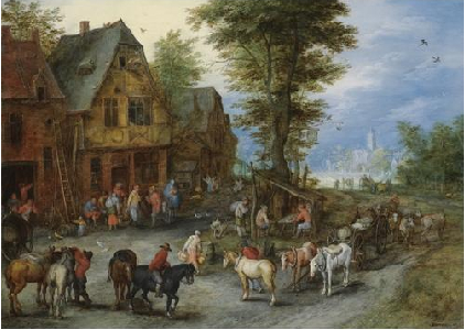 Jan Brueghel the Elder, A Villiage Landscape with Horses, Carts and Figures Before Cottages, 1607 (estimate £800,000-£1,200,000, realized £1,609,250)