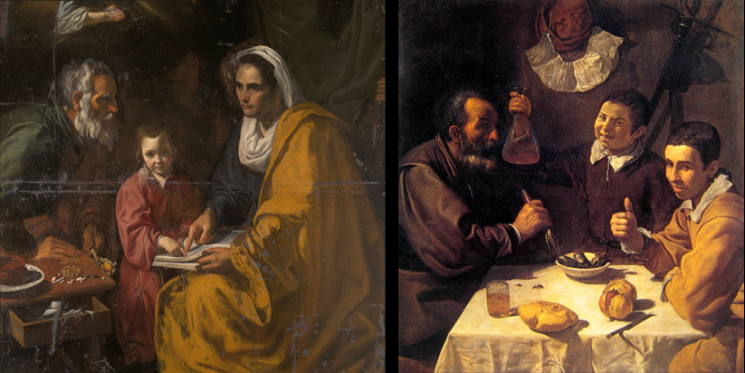 Education of the Virgin side by side with The Lunch, in the early Seville days of Velázquez. Image courtesy El Pais.