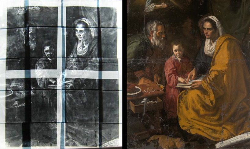 A side-by-side comparison of the x-ray of The Education of the Virgin and the painting itself. Image courtesy El Pais.