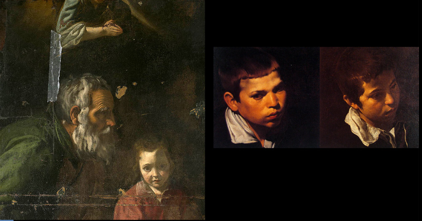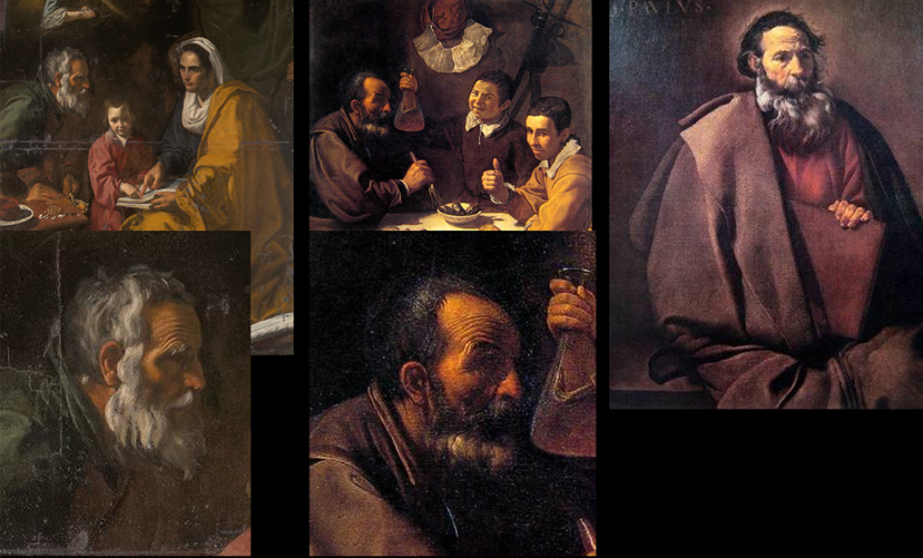 As with the treatment of children, portraits of maturity are also found to be similar. In the lower left, is a detail of the character of San Joaquin in Education of the Virgin. Next to him is a character of Lunch, and to the right, San Pablo. Image courtesy El Pais.