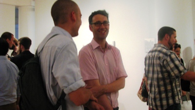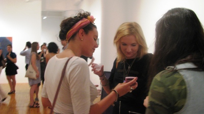 Art Observed was on site July 22nd for the opening of ‘Young Curators, New Ideas III,’ the new exhibit at P.P.O.W. in Chelsea, Manhattan. As the name suggests, the exhibit focused on eight individual curators and the pieces that they chose. The list of curators is as follows: Andrew Russeth & Liza Buzytsky, Erin Dziedzic, Kate Greenberg & Hilary Schaffner, Stamatina Gregory, Gabriella Hiatt, and James Shaeffer. The gallery was packed, and despite no air-conditioning (handmade fans and cups of water abounded), the elevators constantly opened and closed, shuffling in new visitors. The exhibit will be on show until August 20th, 2010.